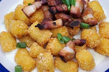 Fried and tossed in a sweet and spicy sauce. Served with Asian inspired slaw in wasabi vinaigrette.