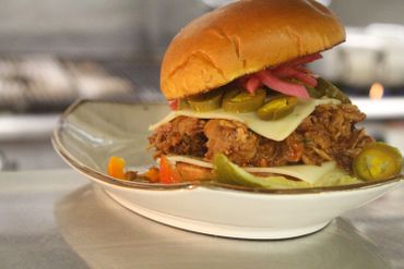 Pat's banger char grilled and served on a locally baked hoagie roll with whole grain mustard and provolone. served with a side of rosemary gravy